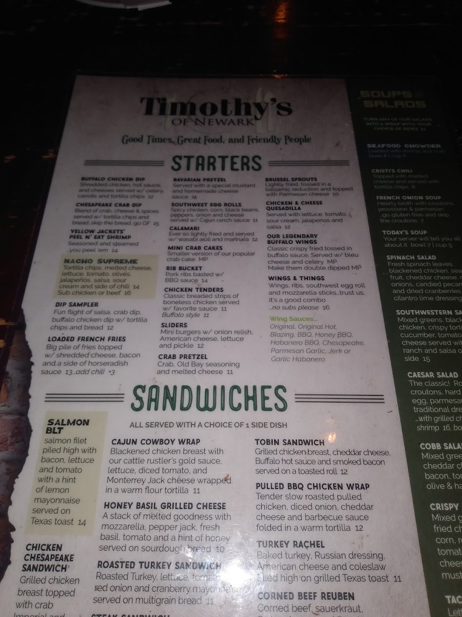 Located at 100 Creek View Rd, Timothy's of Newark serves a tantalizing all-day menu that captures the essence of coastal dining with a touch of homestyle comfort. Seafood lovers can indulge in dishes like Fried Shrimp and the exquisite Maryland Crab Cake Entree, while land enthusiasts might gravitate toward the savory Filet Mignon or the hearty BBQ Ribs.